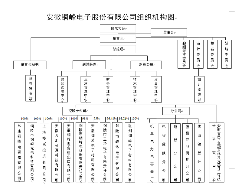 安徽銅峰電子股份有限公司組織機(jī)構(gòu)圖
