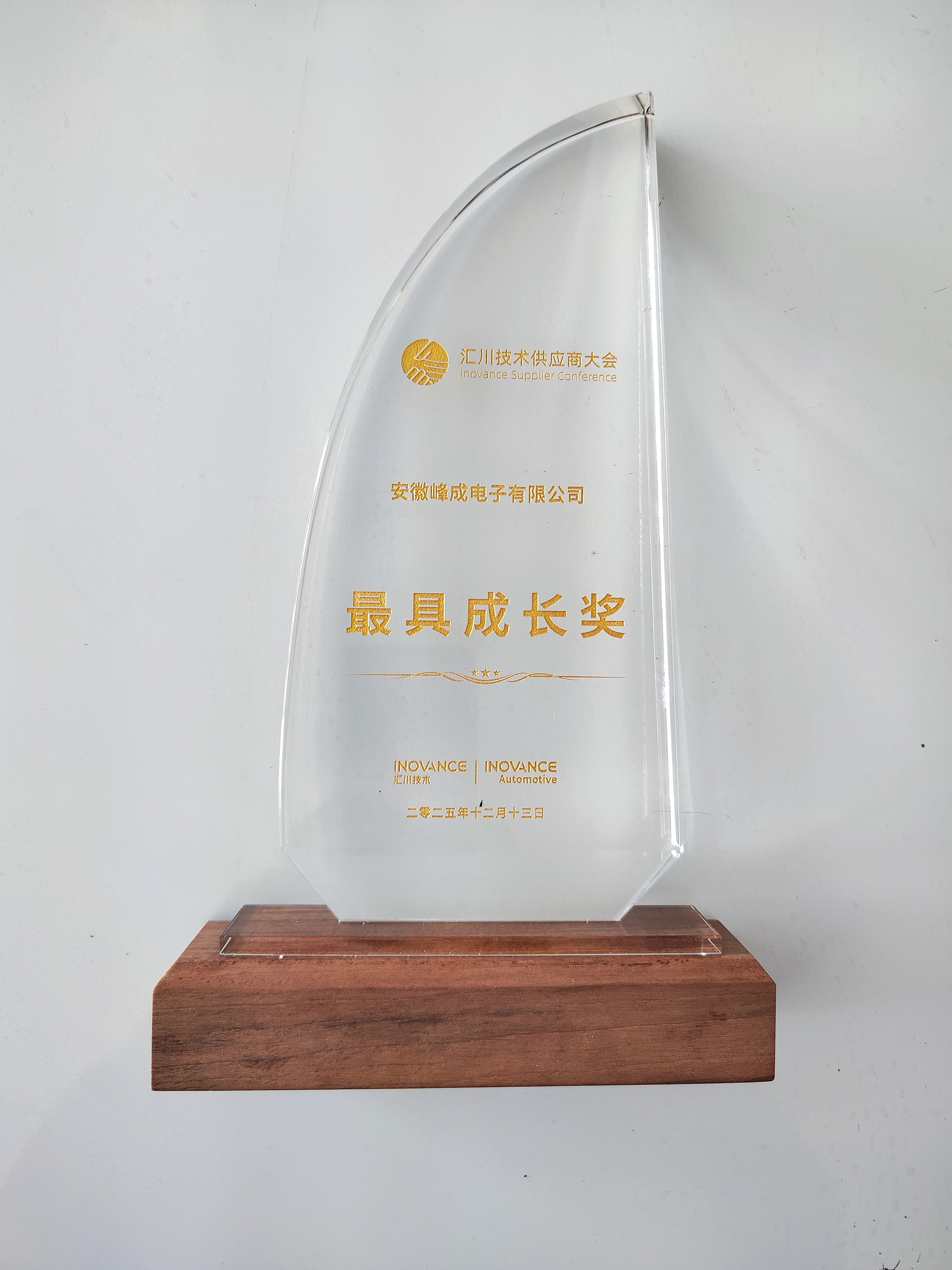 匯川聯(lián)合動(dòng)力是專注新能源汽車電驅(qū)與電源系統(tǒng)研發(fā)的國內(nèi)龍頭企業(yè)之一?!白罹叱砷L獎(jiǎng)”旨在表彰在合作過程中展現(xiàn)出強(qiáng)勁發(fā)展勢(shì)頭、持續(xù)創(chuàng)新能力與卓越服務(wù)水平的合作伙伴。此次獲獎(jiǎng),不僅是匯川技術(shù)對(duì)雙方過往合作成果的肯定,更是對(duì)峰成公司綜合實(shí)力與成長潛力的高度認(rèn)可。面向未來,峰成公司將繼續(xù)堅(jiān)持創(chuàng)新驅(qū)動(dòng),加強(qiáng)新品研發(fā),提升品質(zhì)服務(wù),推進(jìn)雙方互利合作再上新臺(tái)階,助力新能源汽車電子產(chǎn)業(yè)的高質(zhì)量發(fā)展。