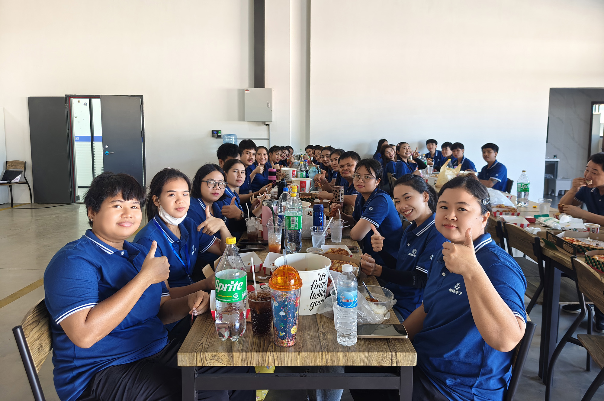 美峰電子尊重并融入泰國當?shù)胤煞ㄒ?guī)與文化習俗,堅持“以人為本”發(fā)展理念,助力企業(yè)發(fā)展?;顒赢斕?,公司外派職工與泰籍員工在輕松愉快的氛圍中共進年會午餐,并在餐后開展抽獎與互動環(huán)節(jié)。美峰電子為員工精心準備了電風扇、電飯煲、廚房小電器等實用福利獎品。公司管理層在活動中向員工致謝,肯定過去一年的努力,并對新一年發(fā)展提出期望。年會現(xiàn)場氣氛熱烈、歡聲不斷,員工通過參與活動感受到企業(yè)的關懷與激勵。