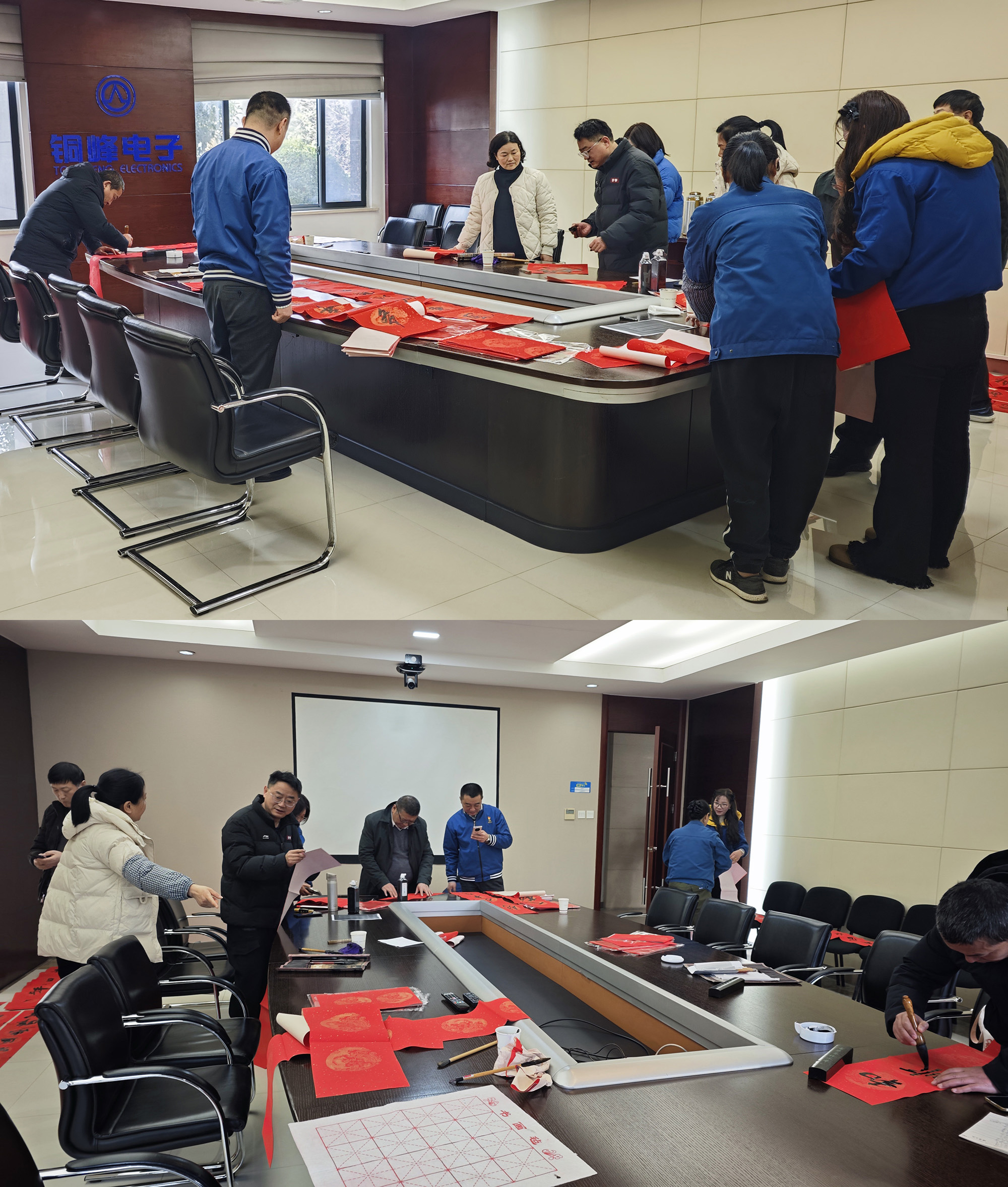 臘月二十四,在公司辦公樓一樓會(huì)議室,公司工會(huì)組織書法愛好者開展“迎新春、送春聯(lián)”活動(dòng)?,F(xiàn)場(chǎng)暖意融融、墨香四溢,職工們挑選或訂制自己心儀的佳句,一副副飽含吉祥寓意的春聯(lián)、一張張充滿喜慶的“?!弊周S然于紅紙上,增添了濃濃年味。